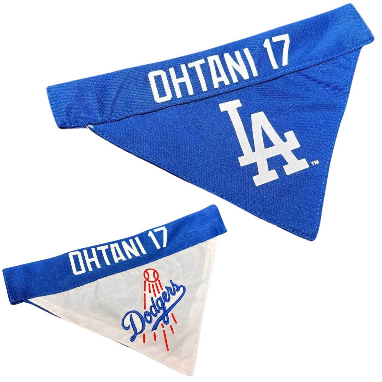 リバーシブル仕様で、片面はドジャースロゴ、もう片面は「LA」マーク。さらに「OHTANI」と背番号「17」のプリント入りで、愛犬と一緒に大谷選手を応援できます。
